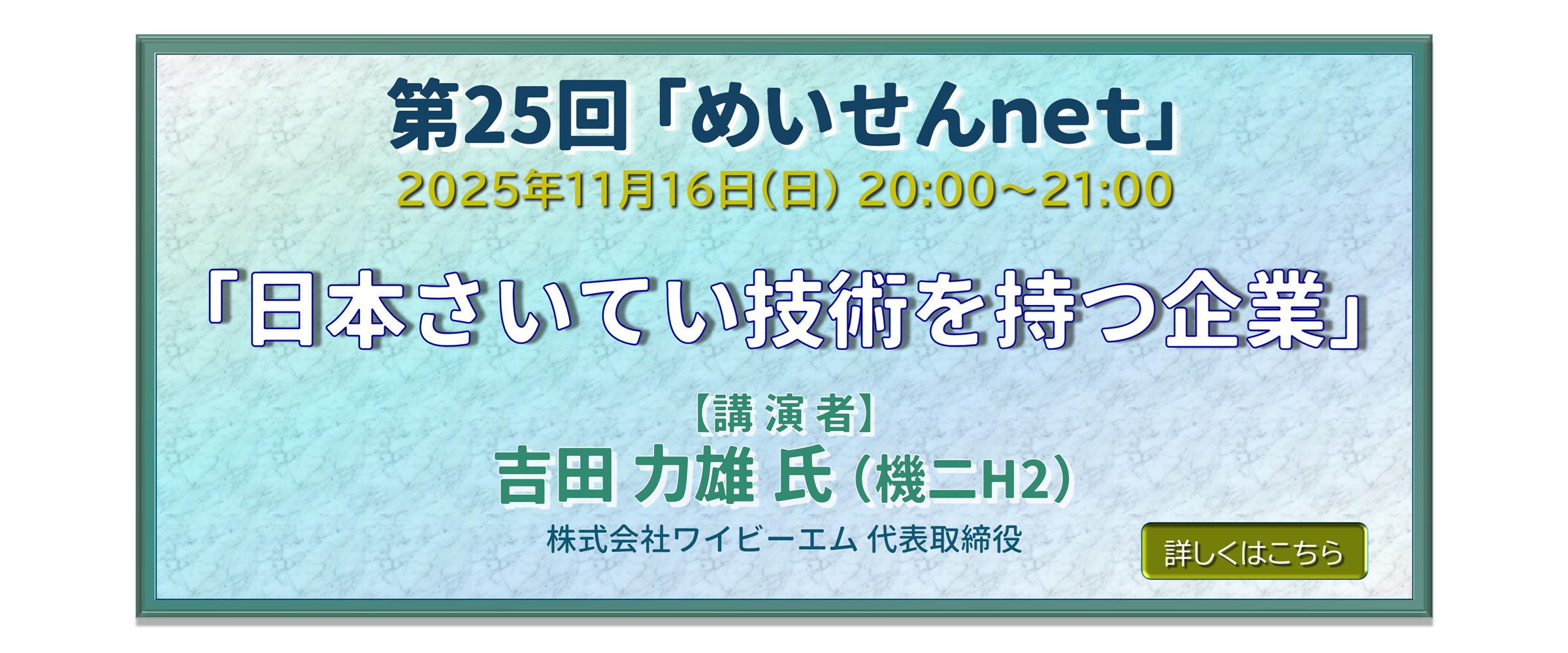 【明専会オンラインセミナー&交流会】第25回 「めいせんnet」(2025年11月16日[日曜日]20:00~21:00) 開催のご案内