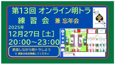 「オンライン明トラ練習会 (#013) 兼 忘年会」開催のご案内 (2025/12/27[土] 20:00~23:00