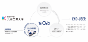 株式会社TriOrb(トライオーブ)は、科学技術振興機構(JST) 大学発新産業創出プログラム (START:九州工業大学/産業技術総合研究所)により創出された九州工業大学発の協調移動ロボットベンチャーです。