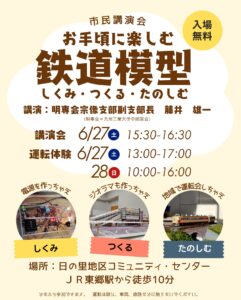 宗像支部 講演会「お手頃に楽しむ鉄道模型」(6/27)、運転会(6/27,6/28)