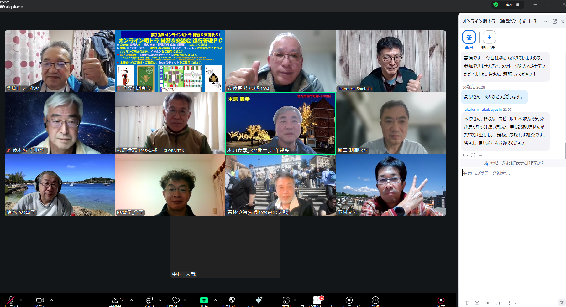 ▲ 第13回 オンライン明トラ練習&交流会 兼 忘年会 集合写真